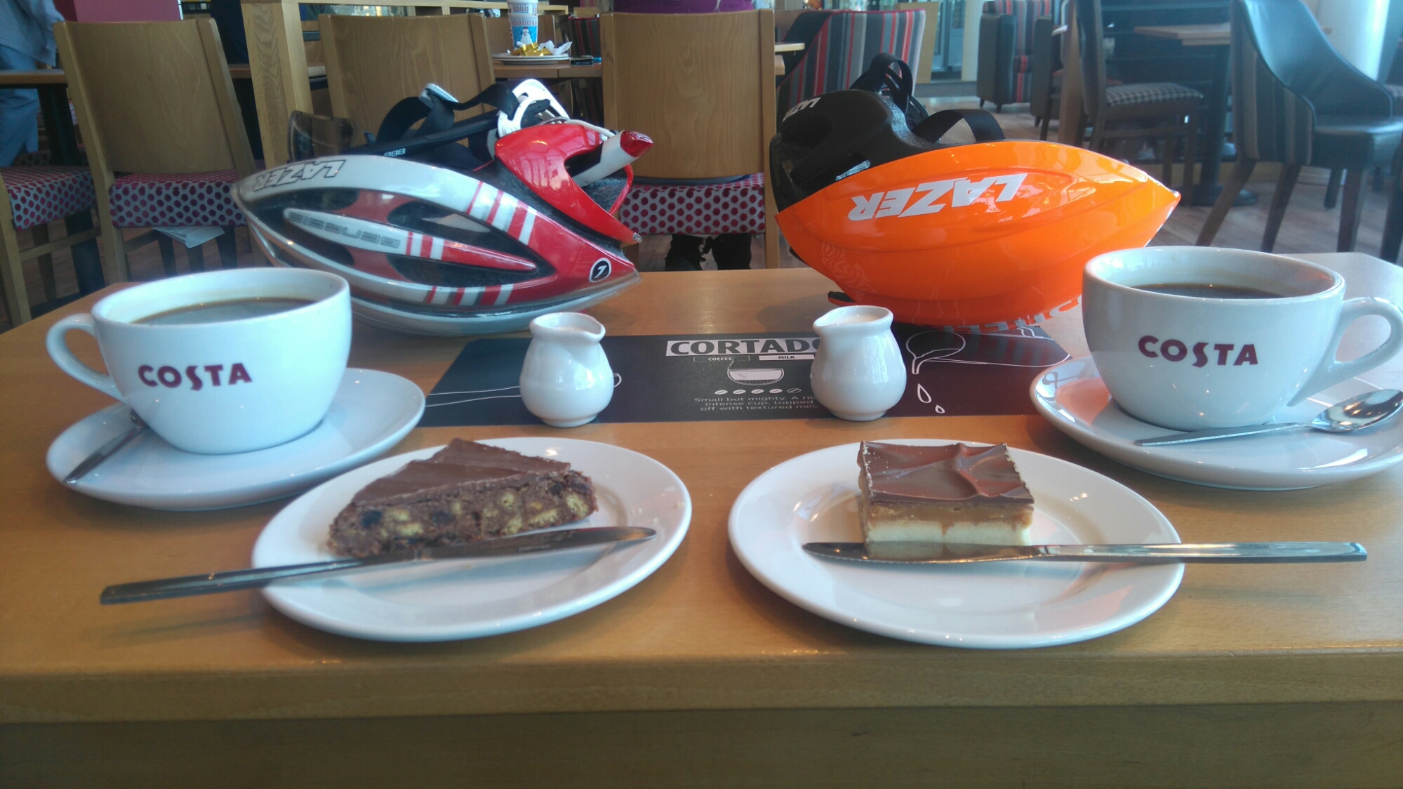 It was a bright sunny autumn day and Stephen was going to meet me at the local bike shop. After a quick change of inner tube at home, I headed down the hill to Stephen. Now I realised it was cold, very cold! Luckily I had my thermal gear on and extras in my backpack. However, I wouldn’t need this to begin as the start of the ride was 3 miles up hill (Cornwall is not flat!). Stephen led the way setting a kind pace for my withered legs and we slowly, very slowly, made our way to the local services. Here we indulged in coffee and cake. I’ve got to keep the calories going in especially if I’m now burning them again! I had my favourite, millionaires shortbread.